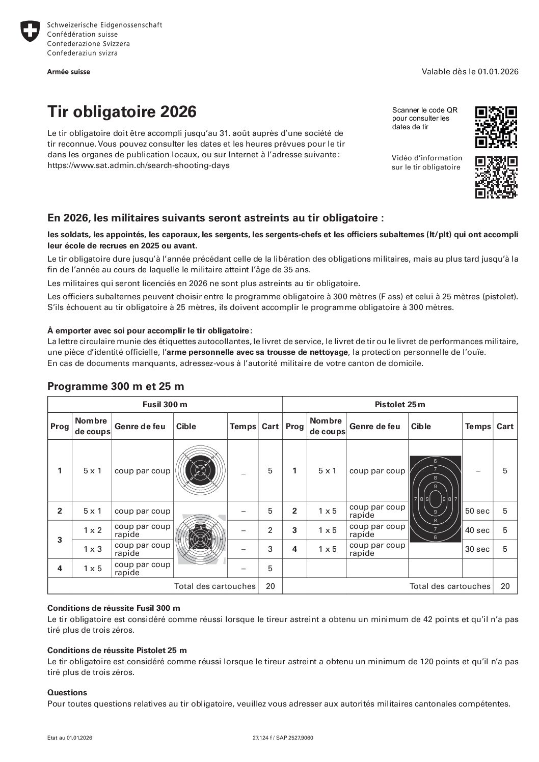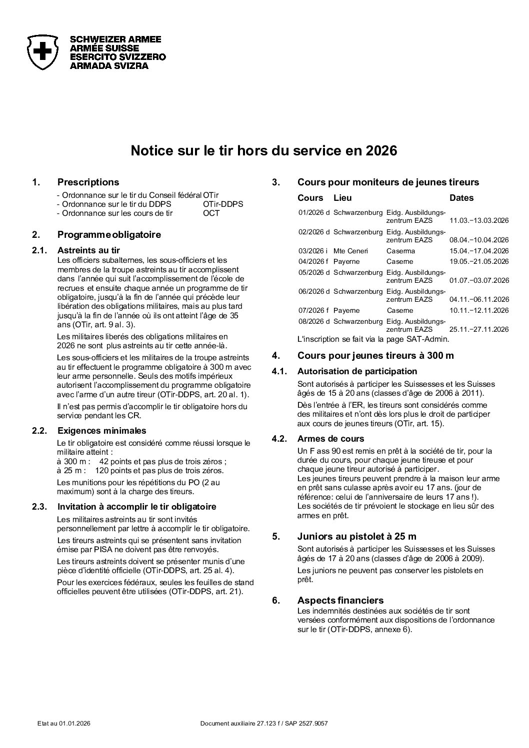 Le tir obligatoire dure jusqu’à l’année précédant celle de la libération des obligations militaires, mais au plus tard jusqu’à la fin de l’année au cours de laquelle le militaire atteint l’âge de 35 ans.